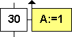 L'affectation de A se produit à l'activation de l'étape 30 |