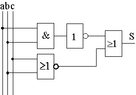 de b (0 ou 1), la variable de sortie reste à 1. L’équation de sortie sera
